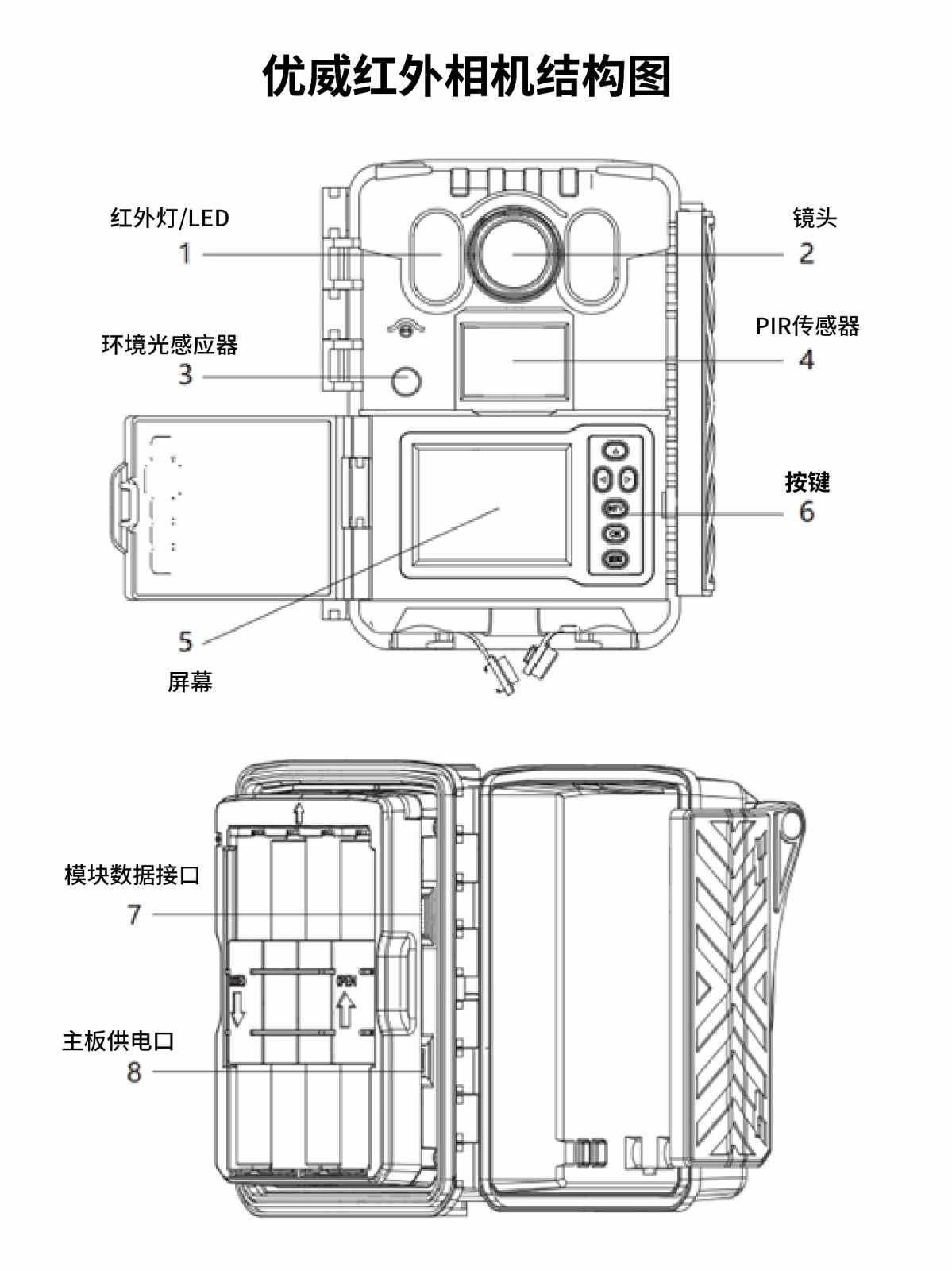 最大支持4K(3840*2160)/30幀有聲視頻,照片像素3200萬,圖像傳感器800W像素,1.8分之一英寸 支持相機(jī)Wifi直連手機(jī)APP,通過手機(jī)設(shè)置參數(shù),回放圖像更便捷 相機(jī)通過WIFI自動同步手機(jī)日期時間及位置信息,免去繁鎖的設(shè)置 2.0寸高清前置全向屏,安裝時方便查看監(jiān)測區(qū)域。更換完電池后,可以不再打開相機(jī)殼體,可避免殼體在雨天打開時意外掉入雨水